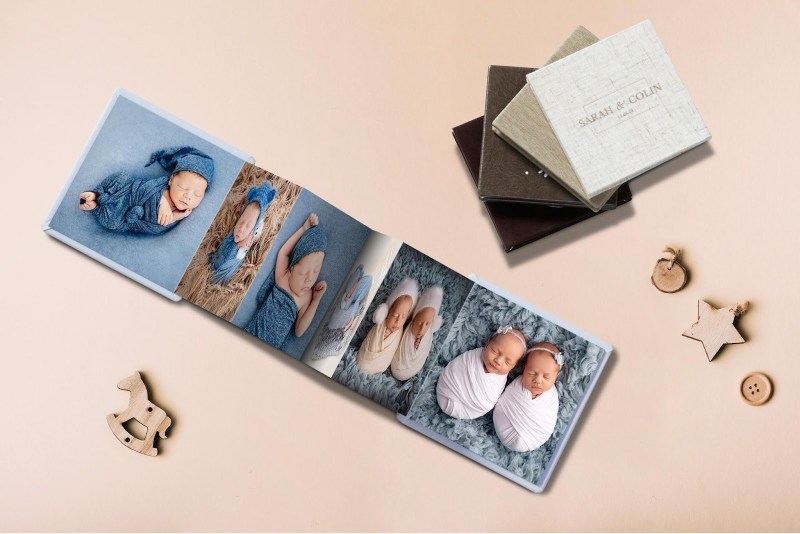 First, small in size but big in impact, the Accordion Mini Book is the perfect Thanksgiving gift or client add-on. With its compact fold-out design, a variety of material covers, and ability to hold multiple images, it’s a pocket-sized gallery your clients can carry anywhere. Photographers often give these as thank-you gifts for families after a portrait session or as a low-cost gift for grandparents who want a portable keepsake. They also work well as mini duplicates of a wedding or newborn album—easy to hand out and guaranteed to spread word-of-mouth referrals.