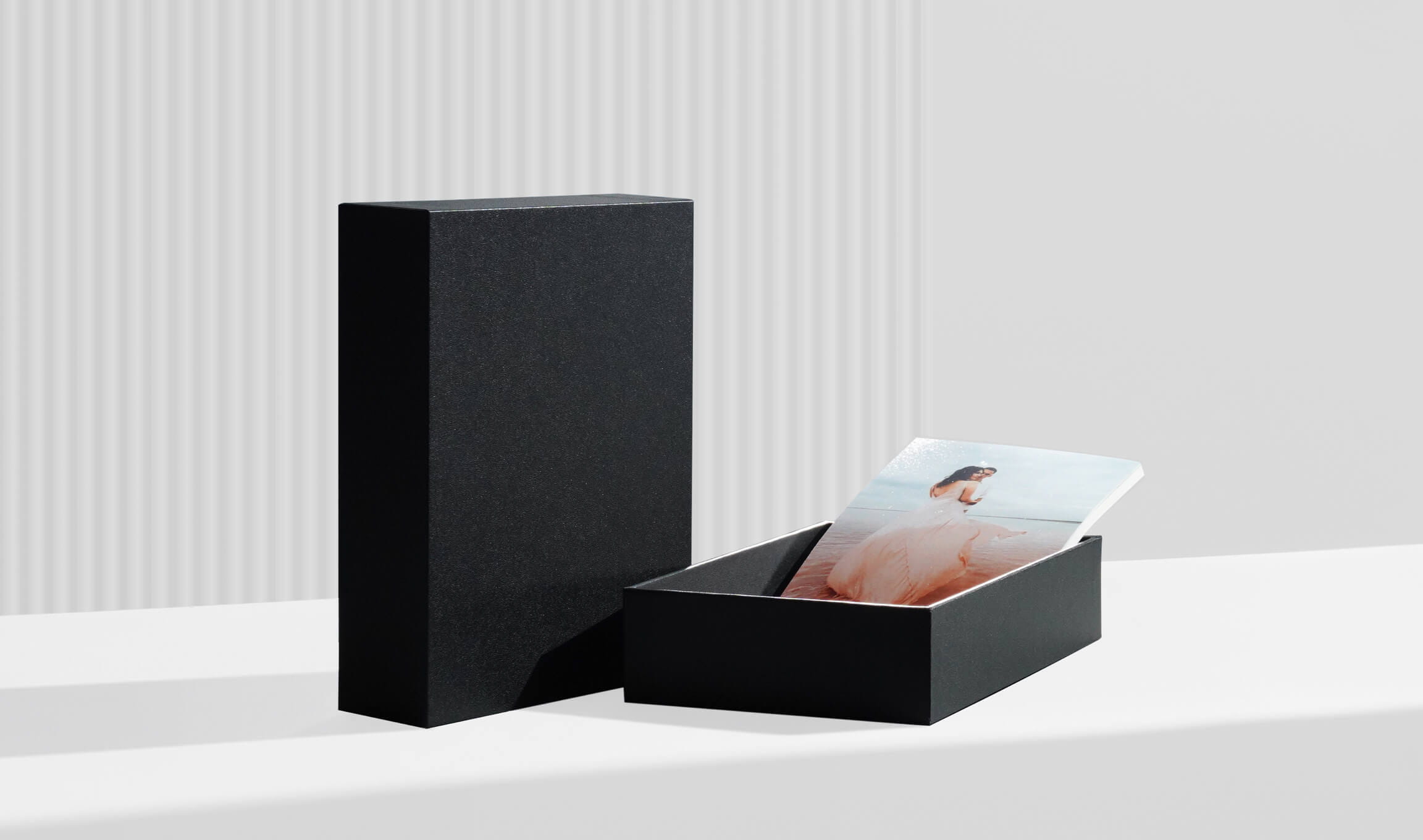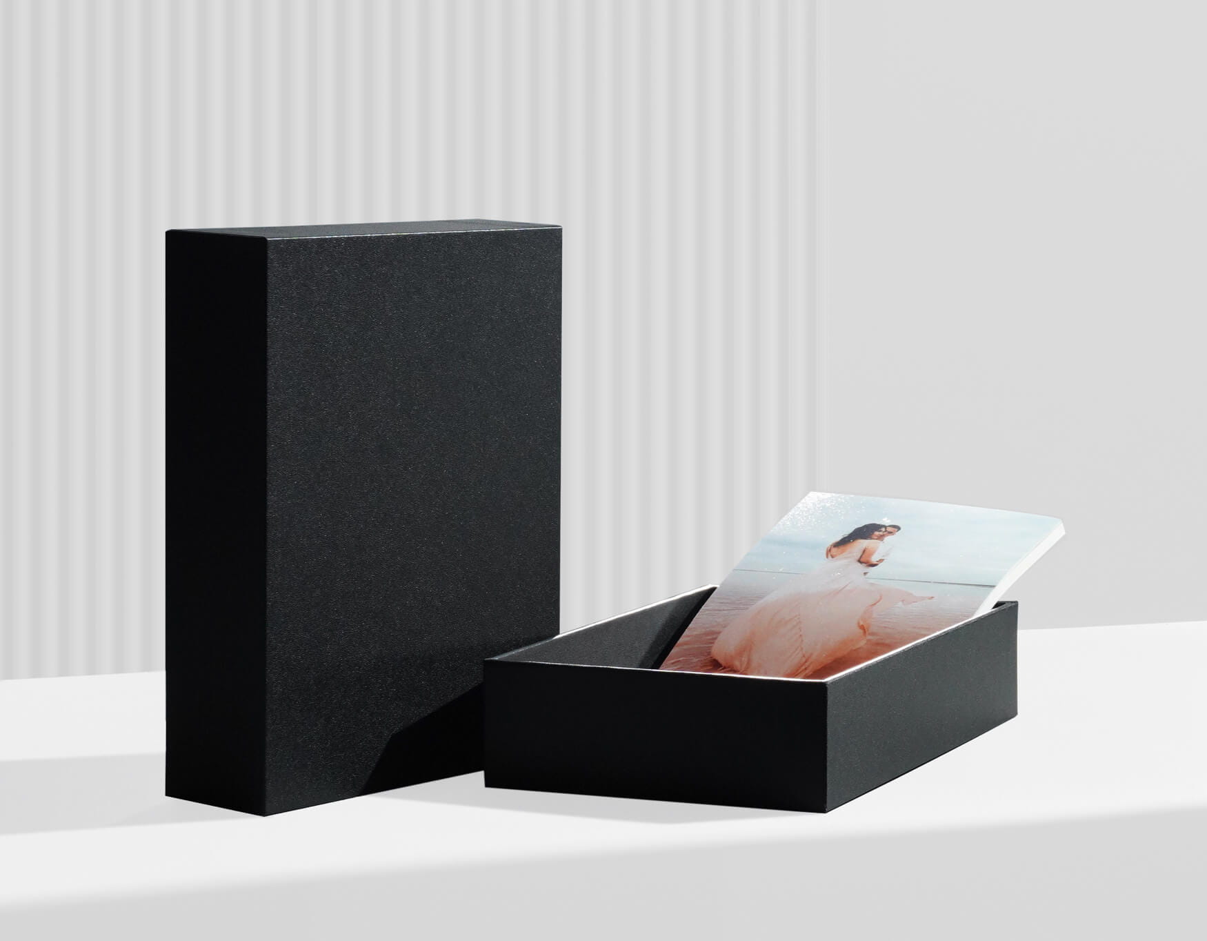 Box colors are available in classic black and classic white, which is perfect for every occasion: from weddings, to boudoir, to seniors to newborns.
