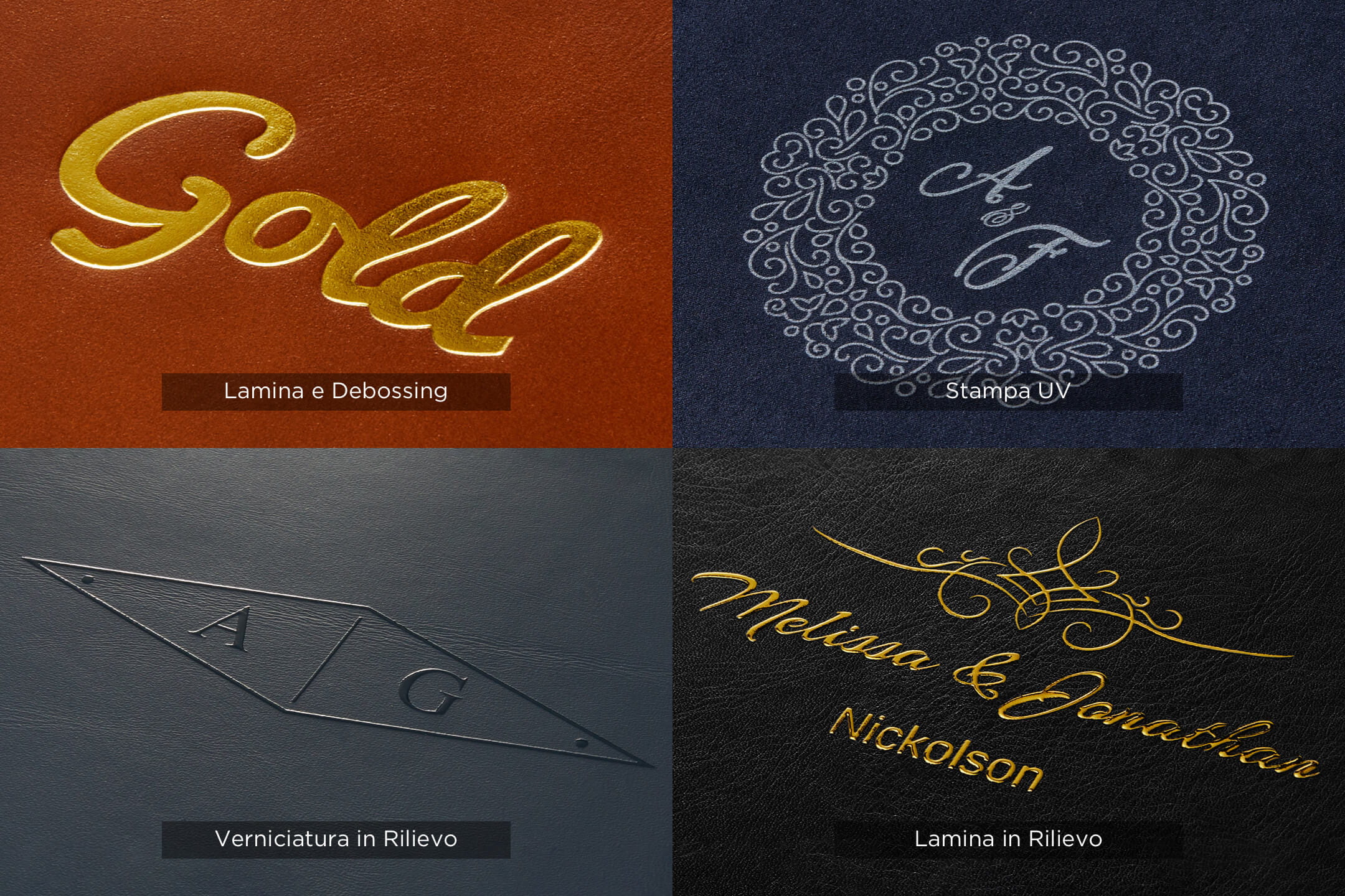 Una collezione di design di copertine pre-fatte con Debossing o Stampa UV.