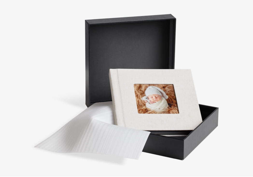 Linen Covers are paired with a Linen Cover Parent Album. Cameo Windows and Painted Text or Debossing are not available on Parent Albums due to the smaller size. These features will be omitted.