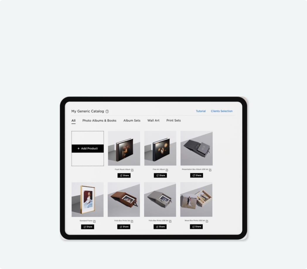 Add personal touches to studio samples and make big impressions with clients. This exclusive benefit is available to professional photographers all year round. Order as many studio samples as you want at 40% - 50% off the regular prices. Studio samples are available for Albums & Books, Album Sets, Prints Sets, and Wall Art.
