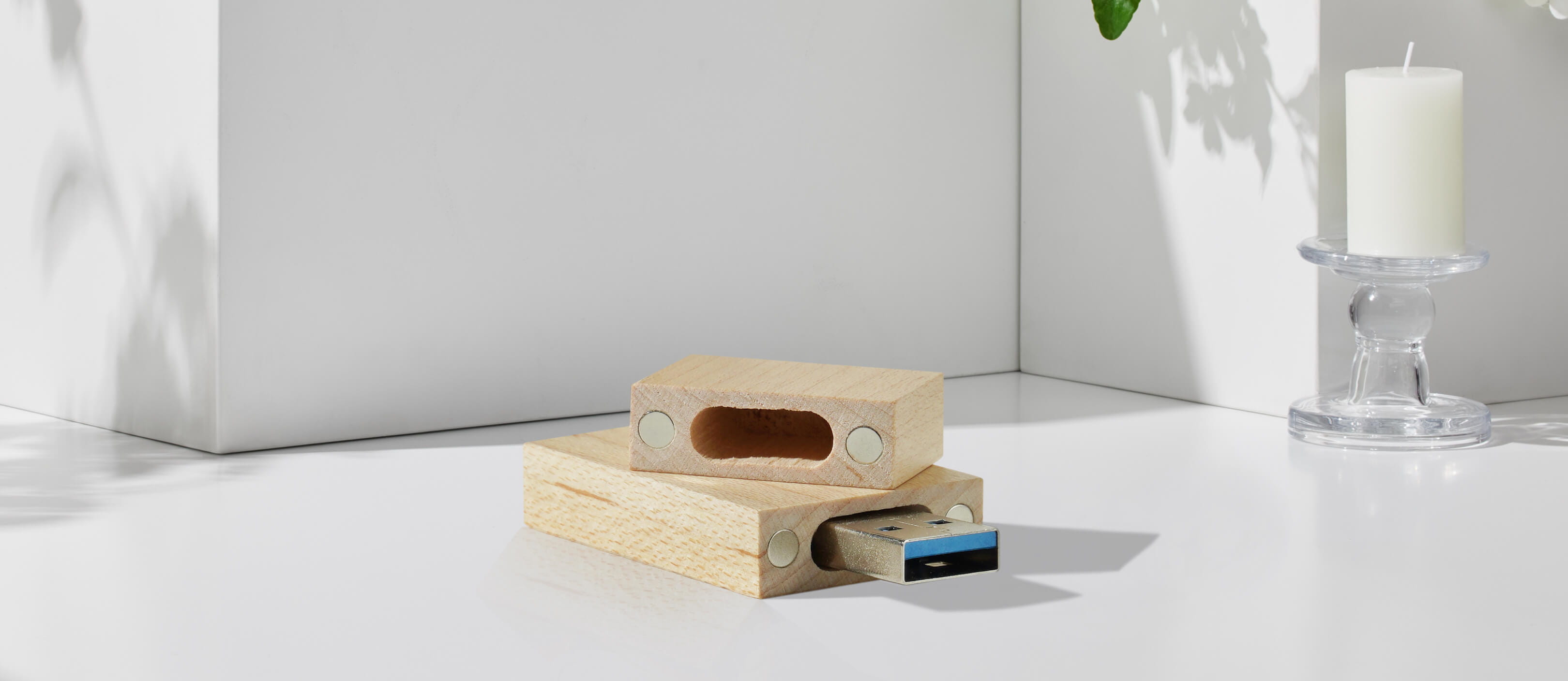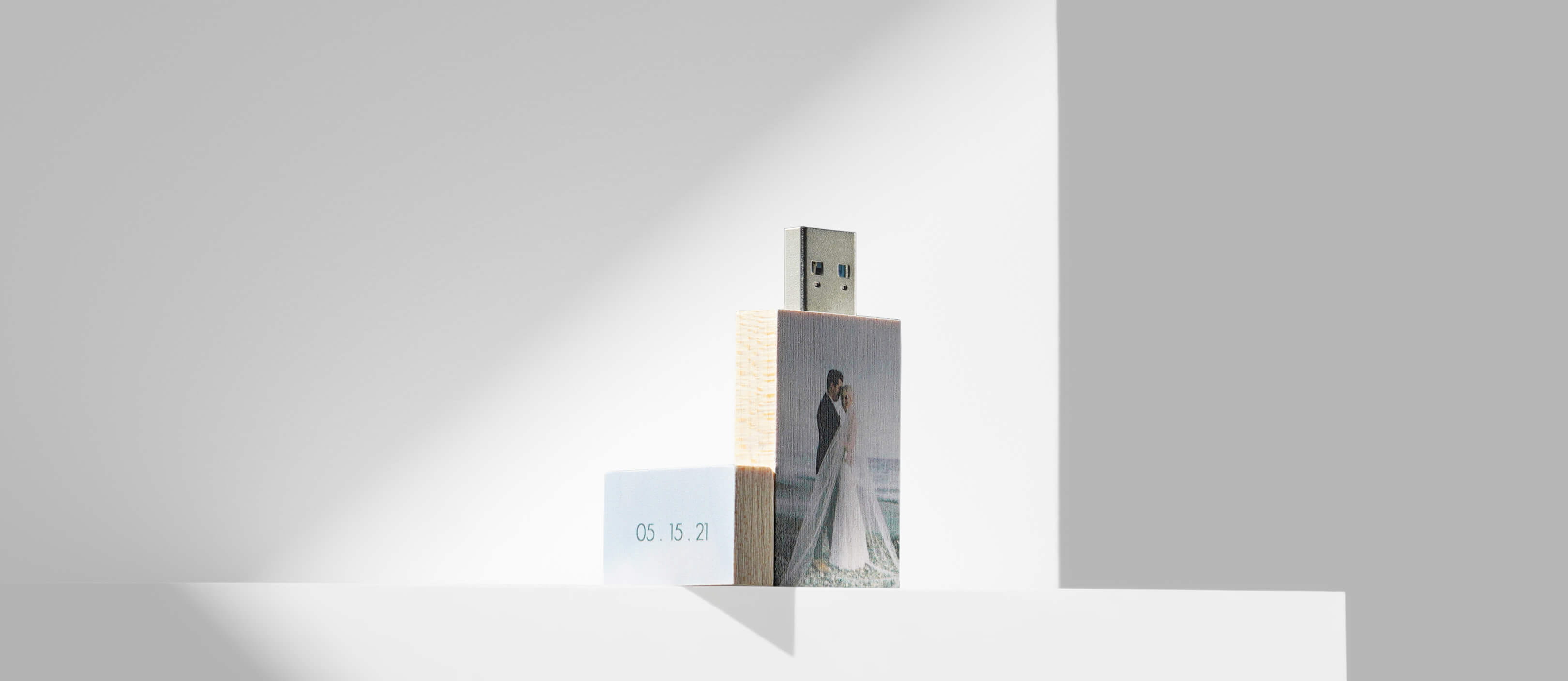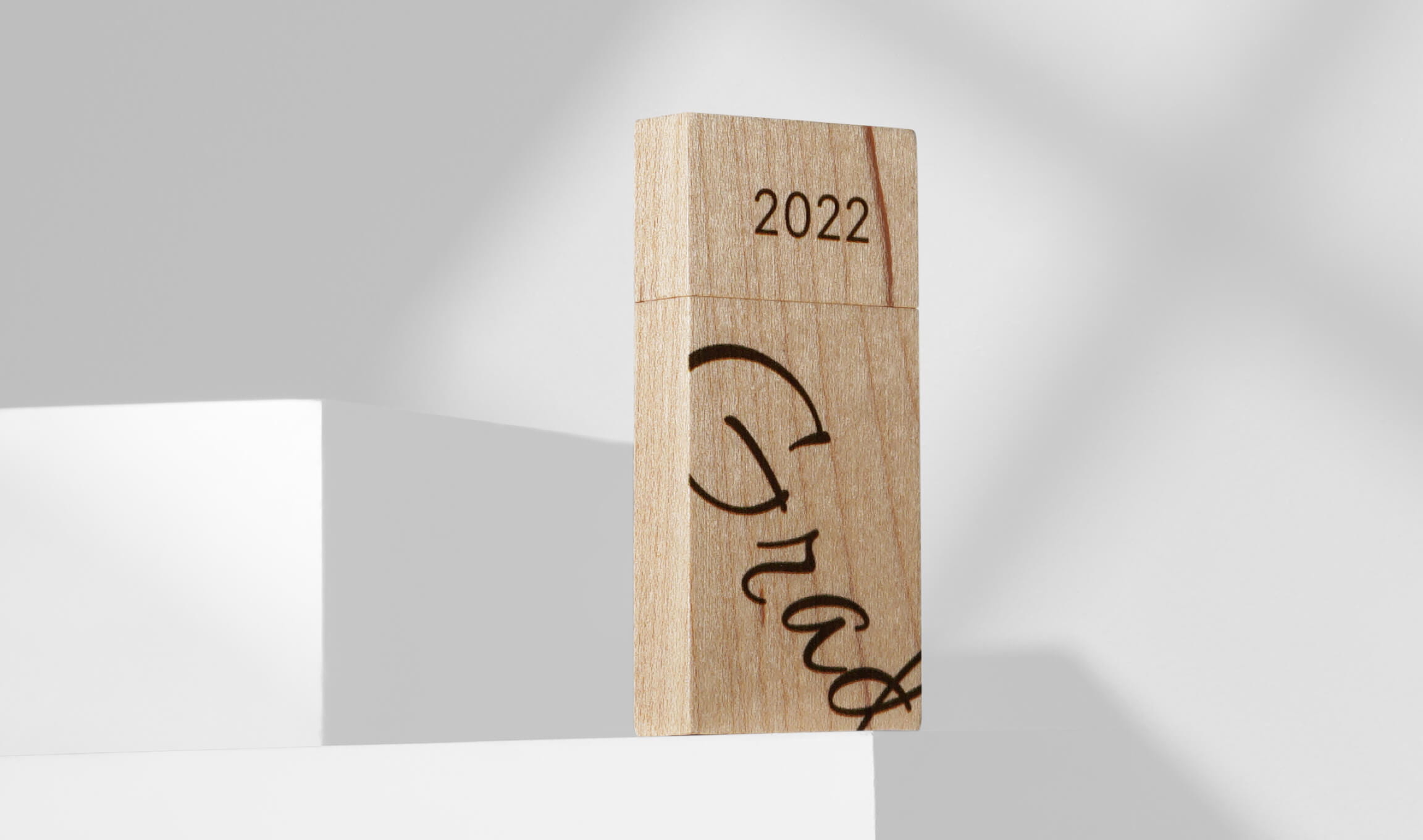 The Wood USB drive is made of solid maple wood and beautifully sanded to let the grain shine through.
